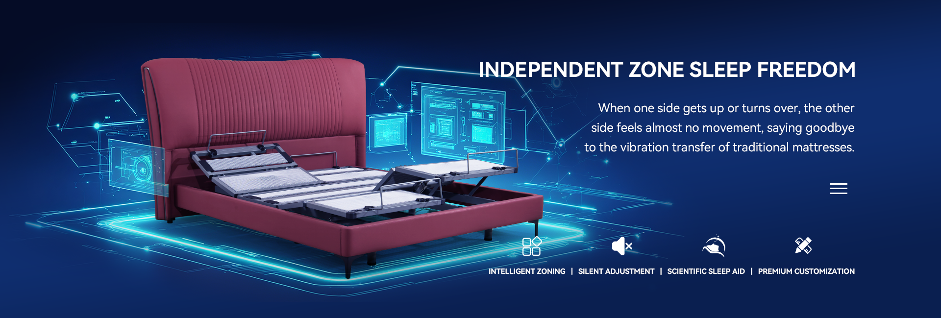 Precision Full-Body Zoned Support: Independently controlled mattress zones intelligently adjust support intensity for the head, neck, shoulders, waist, and legs, perfectly conforming to your body's natural curves. Whether you sleep on your back or side, it provides optimal spinal alignment and effectively relieves pressure points.